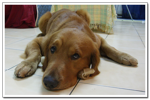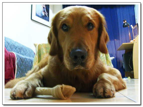 子練大喔!(我家狗狗從小就跟黃金打在一起的呢!)