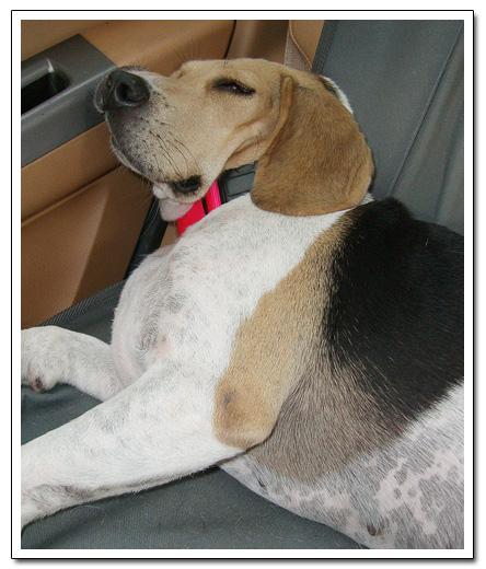 在用完餐回家的路上,好命的兩隻繼續昏睡~ 胖小波更是睡到臉部變形 -__-"