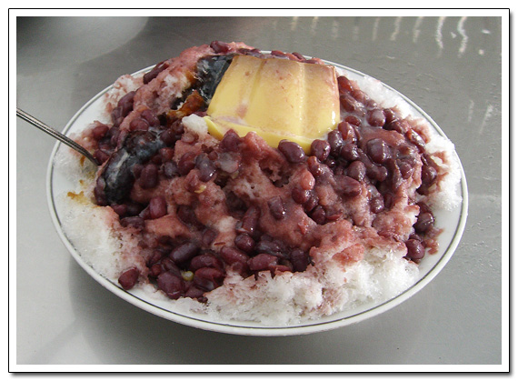 冰涼的挫冰上面,舖滿燉的軟硬適中紅豆,入口即化~