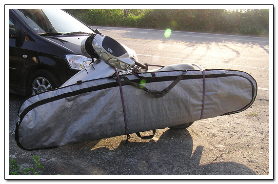 很猛~ 租著摩托車載衝浪板從台東車站過來..