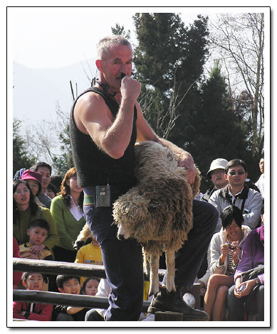 就是表演如何幫綿羊剪毛囉...