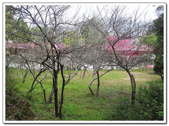 校園四周滿滿盛開低櫻花樹...
