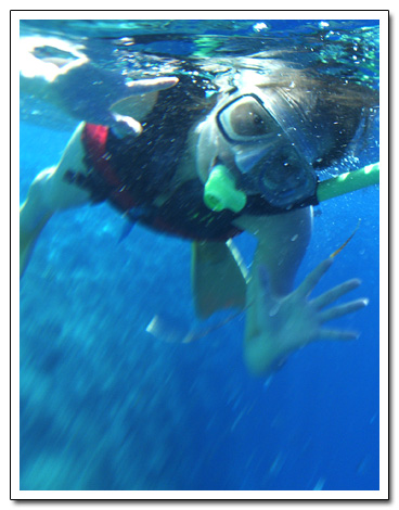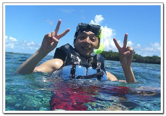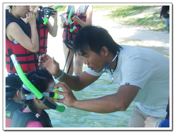 大家著裝完畢... David就帶領大家到一旁的海灘進行基本的浮潛教學...