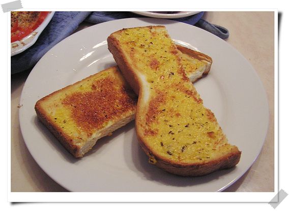 另外順便把剩下的土司抹上香蒜醬烤一下...