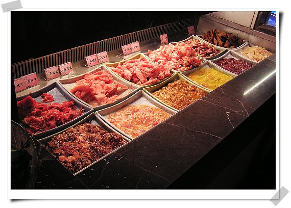 除了一般的豬牛羊肉片,還多了不少店家精心調味的醃肉類...
