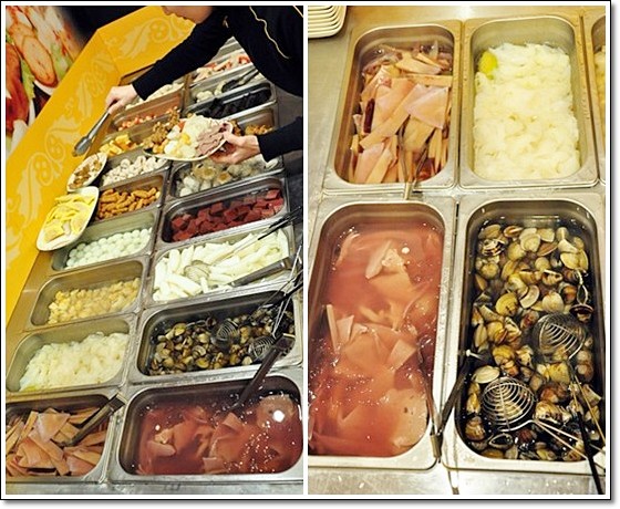 你看到的海鮮類 魷魚 蛤ㄚ 螺肉 排骨酥 豬肝....都是無限量供應啦!