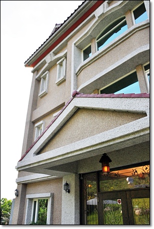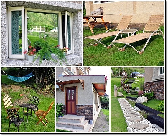 民宿的後方就是老闆打理得漂亮草皮和造景,