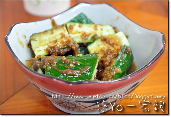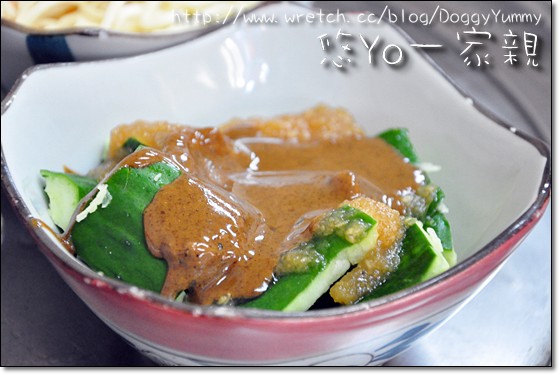 小黃瓜很豪邁低拍打成塊~ 濃郁低芝麻醬淋在上頭~