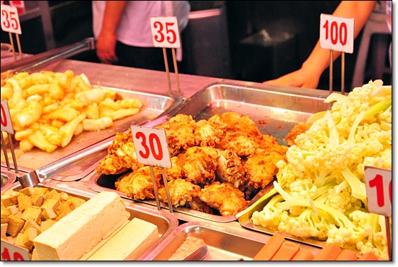 除了招牌炸螃蟹,其實一般鹹酥雞攤販的食材這邊也都看的到,