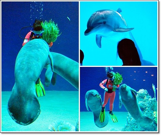 而美人魚館的一旁還可以欣賞海豚在池中優游.