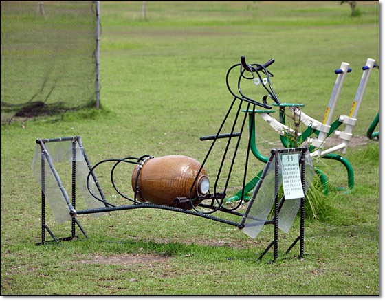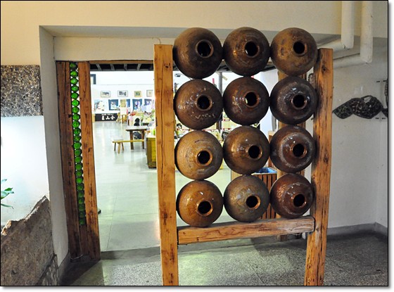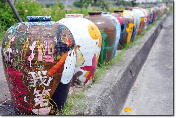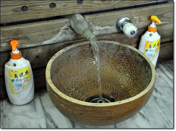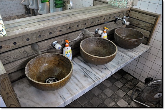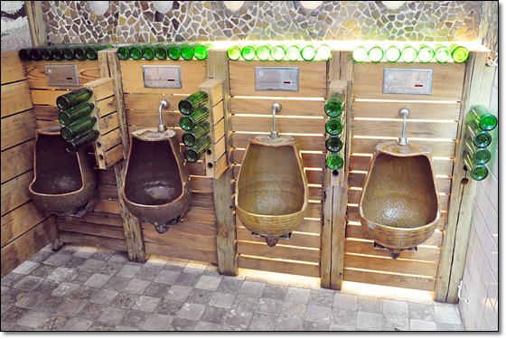 男廁用的尿斗也是酒甕切割而成真是特別~