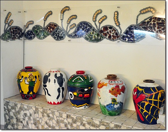 牆上還有碎玻璃酒瓶拼貼~ ![]()