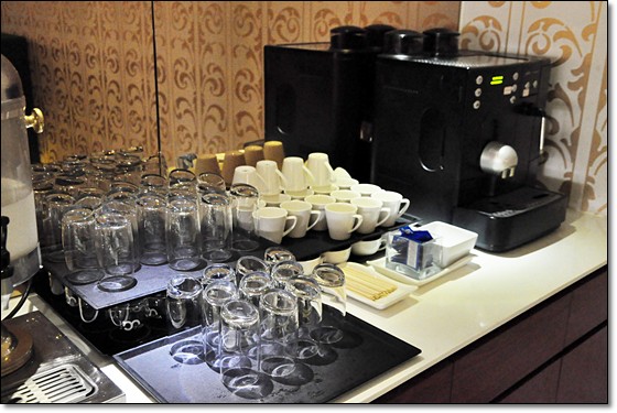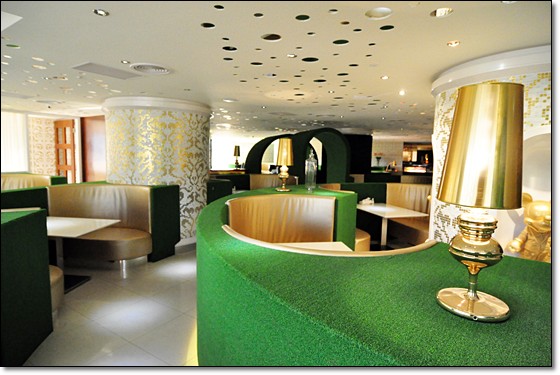 自助bar的圓弧桌面巧妙地和迷宮的隔間融合為一體~
