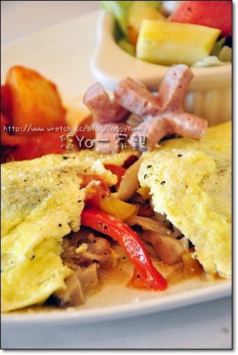 蔬菜起士烘蛋 德國香腸 翠綠沙拉 和 番茄燉馬鈴薯~