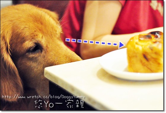 認命的小眼呆臭皮只會眼巴巴盯著桌上的食物不放~
