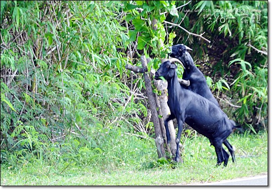 地上的草吃不夠~ 還攀在樹上吃樹葉~