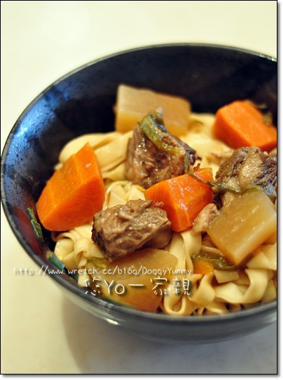 小銳又幫麻醬麵升級了一下~ 加了YoYo麻燉煮的紅燒牛肉和蘿蔔~
