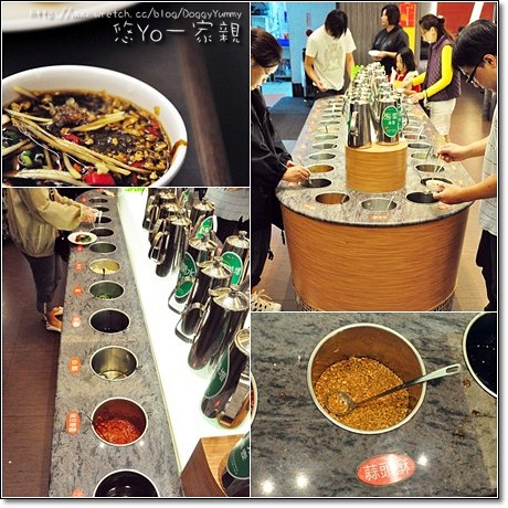 環狀的檯面設計~ 上面擺滿了各式醬料~