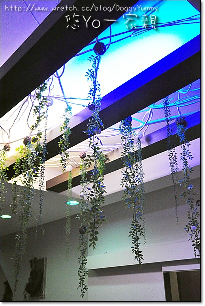 又藍又黃的燈光打在垂藤上~