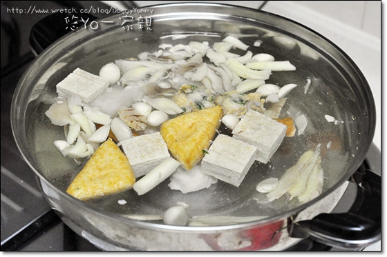 水滾後將料理包和火鍋料全部一起加入滾煮~
