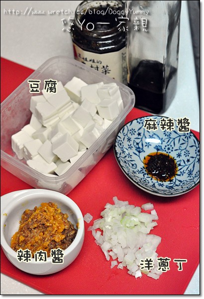備料有 豆腐 洋蔥丁 醬油 糖 麻婆香辣醬~