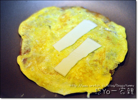 蛋液凝結後放上起司片~