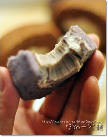 紮實的芋頭餡讓整個蛋糕很有份量~ 拿起來沉甸甸~