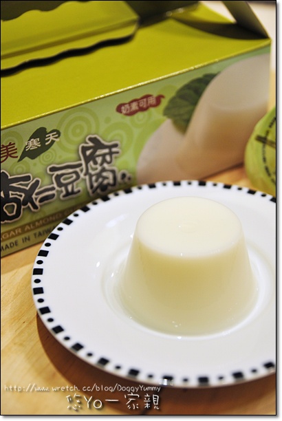 打開包裝~ 質地白皙的杏仁豆腐在盒裡ㄉㄨㄞㄉㄨㄞ的晃動~