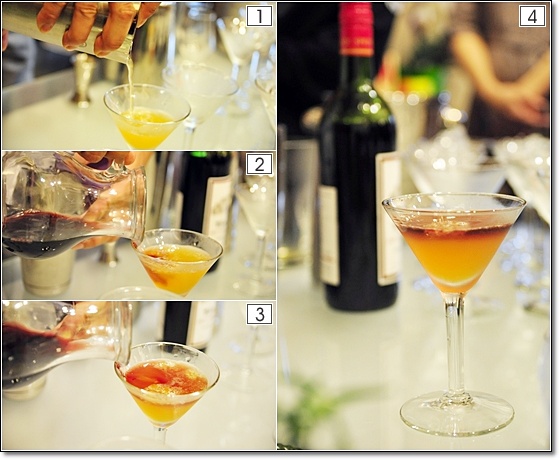 4. 倒入十年窖藏精釀陳紹和新鮮的葡萄柚汁約15 cc