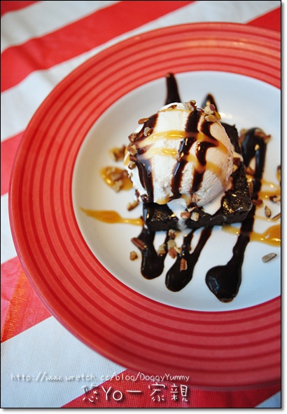 甜點-特製香草冰淇淋布朗尼冰涼爽口的香草冰淇淋疊在溫熱的布朗尼蛋糕上~