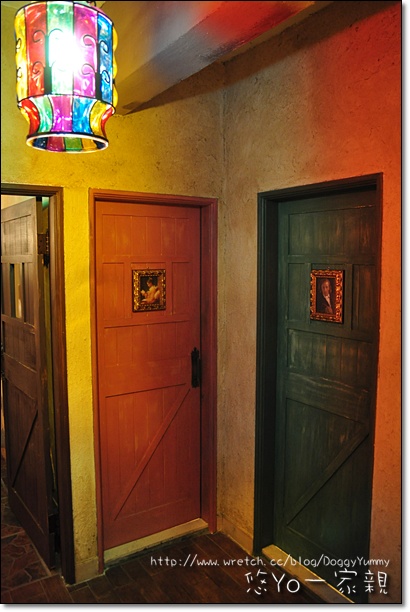 廁所的設計也很妙~ 直接將男女畫像掛在門上~