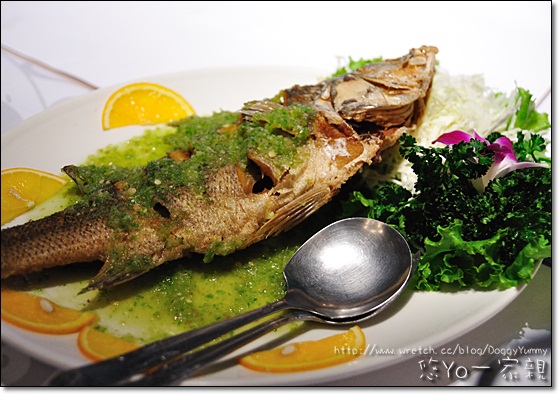 淋上整隻炸好的酥脆鱸魚~ 清爽又好吃~