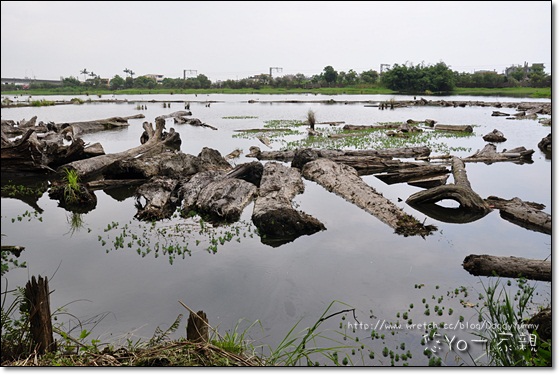 大批漂浮在池中的木頭~ 隨意散落在寧靜的湖面~