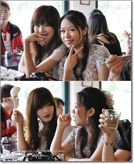 吃太飽撐著的三位美女開心低划起酒拳來~