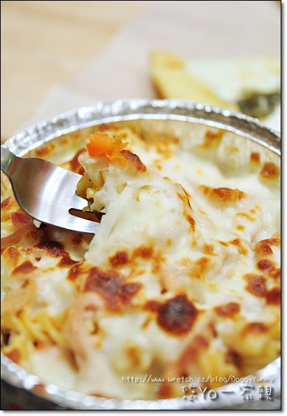 500g的焗烤麵份量相當大~ 直接用圓形的鋁箔紙盒包裝~