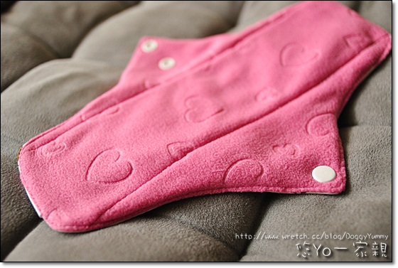 這一款一般型布衛生棉採用獨家粉紅愛心壓紋刷毛布