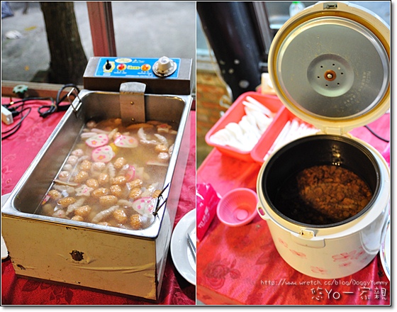 肚子餓的yoyo先裝碗滷肉飯和關東煮餵飽他~