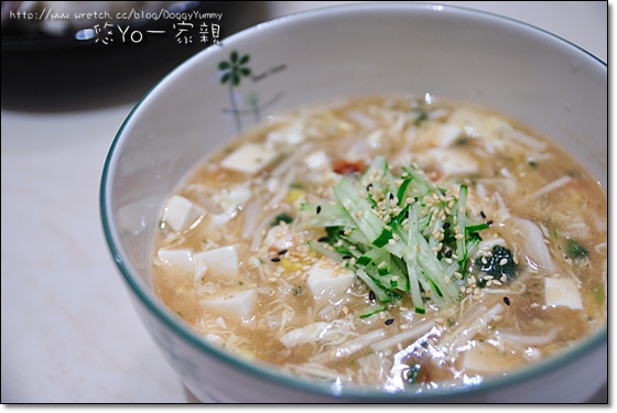 冰箱剛好有些金針菇 玉米粒 豆腐 和 小黃瓜~
