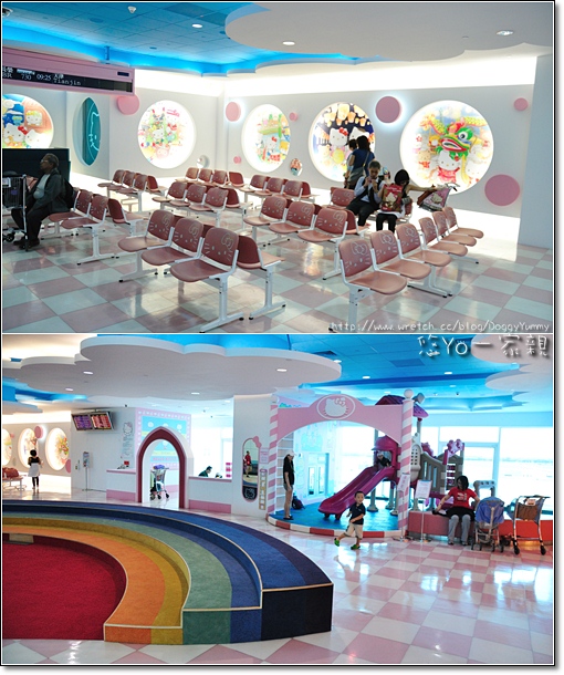 休息區的牆面上也都是超卡娃伊的Hello Kitty 壁畫~