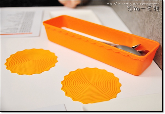 橘色的杯墊和餐具盒鮮艷又可愛~
