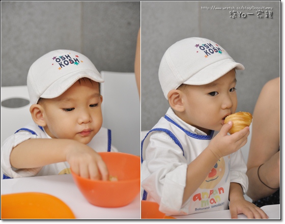 看到兒童餐盤直接拿起來猛啃~ XD