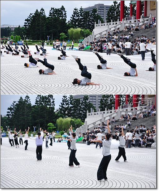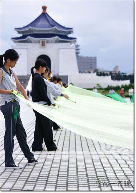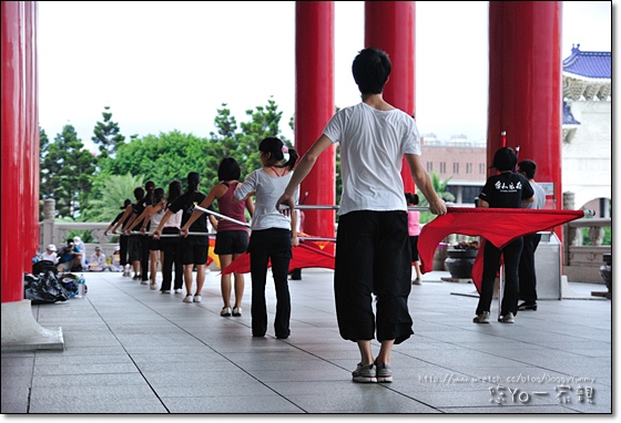 兩廳院的騎樓下也有學生們在賣力練習舞旗~