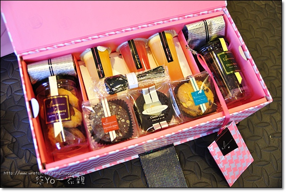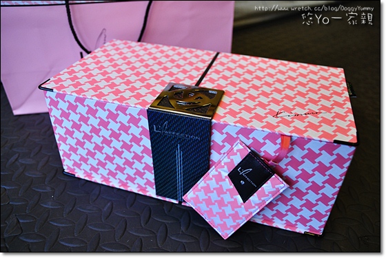 紙盒上典雅的粉紅格紋還有閃亮金蔥點綴其中~
