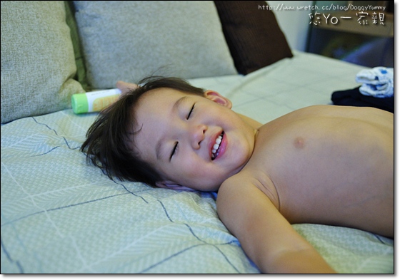 YoYo每每洗完澡後都會開心低拿護膚霜說要擦膏膏~ 哈!
