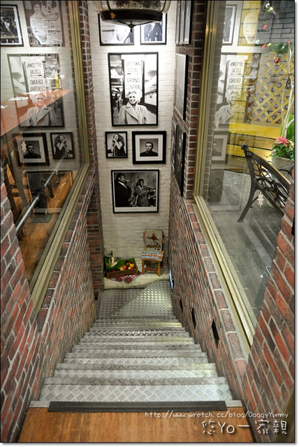 樓梯間的牆面上也掛滿黑白色調的海報和照片~