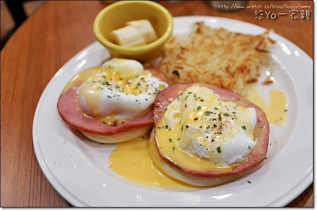 兩顆班尼迪克蛋外加配菜薯餅和水果香蕉~