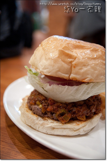 熱騰騰烤過的漢堡堡夾著滋潤多汁的漢堡肉~