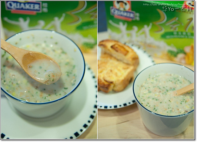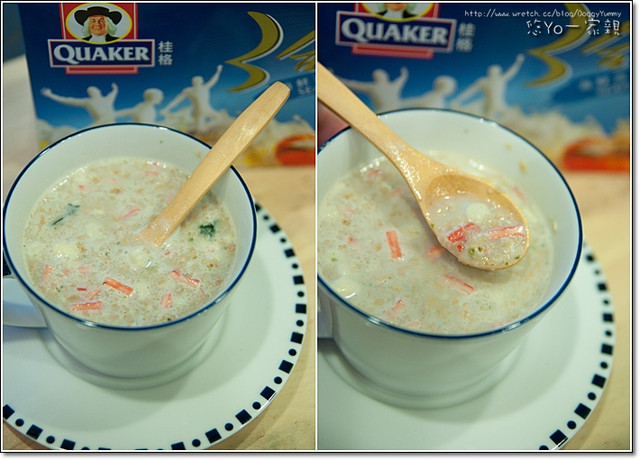 泡好的桂格海鮮麥片有濃濃的鮮奶和巧達濃湯的香味~