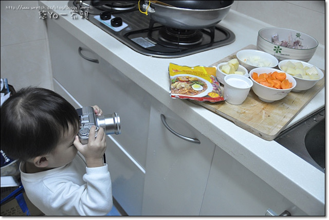 看他老爸在拍食物也跟著在旁邊拍 XD