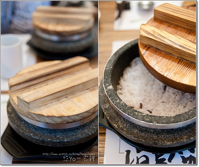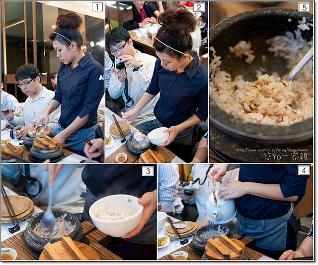 品嚐的方式是先將石鍋中間大部份的米飯裝盛後直接享用~